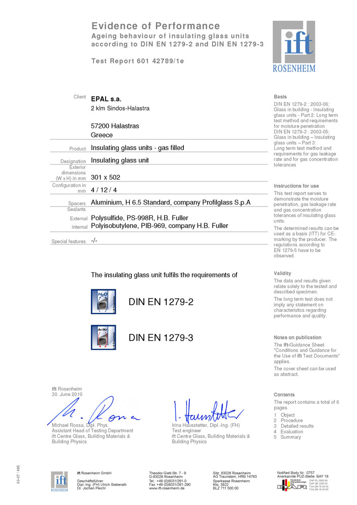 DIN EN 1279-2 & 1279-3 Insulating glass units.